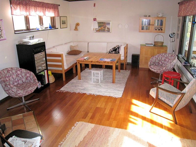 ....mit schwedentypischer Essecke und Blick in Richtung See